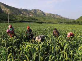 二是依托产业增加收入。2006年,小平房村坚定地选择紧跟中央大政方针,借助工业发展基础,振兴发展农业。将分给农户的土地集中流转到村,村集体领办创办合作社,实施规模化、产业化经营。建设高标准水平梯田,累计新造耕地2000多亩,促进农业发展。建设无公害杂粮基地,种植黑土地小米1000亩、富硒小麦500亩,实行“统一规划、统一品种、统一技术、统一收购、统一销售”的“五统一”发展模式,建成面粉加工厂1处。发展南果梨产业,建设5000亩南果梨园,栽植南果梨树30万株。延长产业链条,投资兴建南果梨深加工厂,建设南果梨保鲜库10个、酒窖1个和南果梨酒深加工生产线2条,研制开发了南果梨生榨果汁饮料和南果梨白酒、白兰地、冰酒等酒品。基于周边地区蔬菜需求,村集体出资建设高标准蔬菜大棚220亩,以优惠价格租给村民,多渠道增加村民收入。