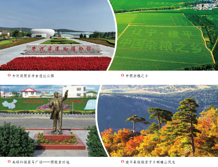 辽宁省建平县文脉相承、薪火相传。在努鲁儿虎山谷间有3道长约10公里的丘陵土梁,因狭长的牤牛河从这里蜿蜒而过,故得名牛河梁。这里分布着距今约5800年至5000年的新石器时代晚期红山文化遗址群,其中有神庙、祭坛、积石冢,出土了塑像、彩陶、玉器等珍贵文物。2023年12月,国家文物局发布中华文明探源工程最新成果,确定牛河梁遗址为距今5800-5200年前后“古国时代”第一阶段代表,属于新石器时代晚期的红山文化,为中华民族五千多年的文明史提供了有力物证。2020年牛河梁国家考古遗址公园被评为国家AAAA级旅游景区。牛河梁红山文化遗址与良渚文化遥相呼应,被载入《中国历史》教科书,更成为北京大学思想政治课教育实践基地。