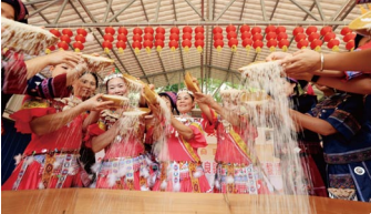 酸嘢飘香庆丰收,民俗竞技展新颜。在广西柳州市融安县大良镇良北村年洞屯,融安县举办了以“金秋绘风景,酸嘢唱赞歌”为主题的2025年农民丰收节暨大良镇第四届坛子酸擂台赛。当地苗族、壮族、侗族等民族群众欢聚一堂,通过开展集百家米、插秧比赛、挑稻谷接力等传统农事活动,以农事竞技、民俗展演共庆中国第八个农民丰收节。