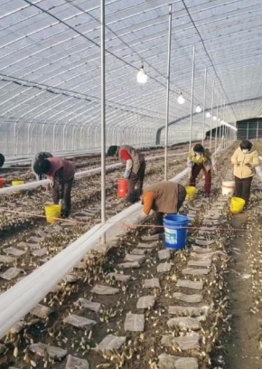 规模集聚让产业提质。2023年整合资金530万元,流转100亩地建16座标准化大棚,配套300平方米菌种培育车间和日处理1万斤鲜菌的烘干线,当年销售收入260万元,为集体贡献100万元。2024年再投160万元增建4座智能大棚,总面积达50余亩,亩产稳定在1500斤,亩均净收益4-5万元,集体收入跃升至150万元。