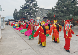 灯会秧歌表演巡游队伍角色齐全,有文武财神、丑角、小丑、老㧟、老头、小生、花旦等传统扮相;由“拉大衫的”统一指挥,身着标志性大衫带队领舞,锣鼓喧天、执旗前行,队伍整齐有序,民俗韵味浓厚。由“伞头”领唱,曲调喜庆、韵味浓厚,村民喜闻乐见,现场气氛热烈。共有4位“伞头”起调领唱,带着其他的角儿,唱出新年祝福语。为增强气氛,“伞头”之间还进行对唱,一腔一调都勾起了村民对年味的回忆。