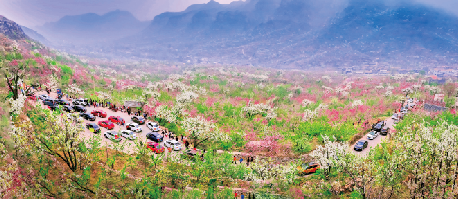 更令人惊叹的是“九弯十八园”:10万余米的石坝如巨龙盘卧悬崖,最大的石块重达100吨以上,30华里的景观带串联起撷芳园、农耕体验园与精神家园等,这般“人造奇迹”,在国内独树一帜。再加上天宝山区的崮形地貌,5万亩果园春如花海、秋似金浪,被称为“亚洲最大的天然花园”,奇景自不待言。2022年秋,临沂诗词学会组织著名诗人到九间棚采风,面对十万米横亘高山崮顶、在云中时隐时现的巨型石坝,联想到九间棚几十年创业的艰辛和磨难,一位诗人深情吟出“石屋石路石坝,磊磊现倔骨;天池天潭天湖,淼淼汇血汗”,道出了游人的共同心声。