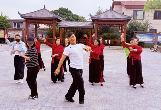 “大家跟上节奏,注意手部动作!”杨军边做示范边说着话。他正在边台村的文化广场上,带领一群平均年龄超60岁的村妇女们排练舞蹈。大家脸上洋溢着笑容,动作整齐又充满活力——这就是火遍网络的“边台女团”日常。