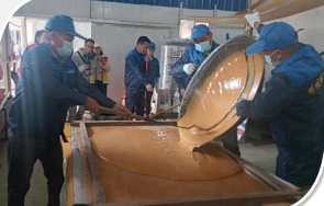 甘蔗丰收后,匠人将蔗汁熬炼,传承千年的古法红糖技艺就此开启。蓝衣壮始终以勤劳著称,以古法熬糖技艺闻名。这一传统技艺代代相传,是蓝衣壮文化的瑰宝。