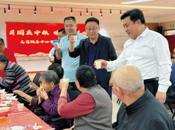 田晓伟(后排右一)与老人吃中秋团圆饭
