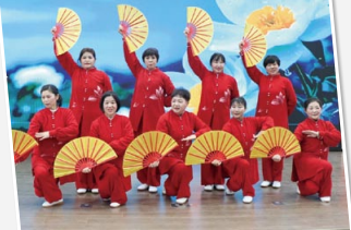 村民表演《二十八式太极扇》,展现精气神